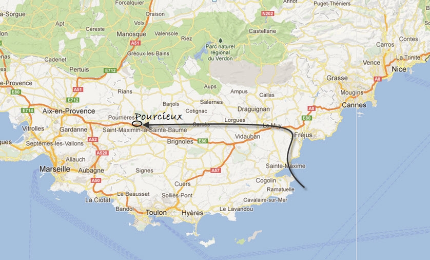 Par la route, depuis Paris/Lyon/Aix en Provence, vous accèderez à la Bastide par l'autoroute A8, sortie numéro 32 , Pourcieux est à 20 km ens suivant la DN7 en direction de saint Maximin la Sainte Baume.